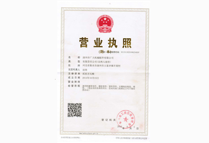 深州市廣大機(jī)械配件有限公司始建于2000年,是專業(yè)生產(chǎn)橡膠、塑料用品、沖壓件的民營企業(yè)。我公司地處古城深州,石德鐵路、京九鐵路、石黃高速、大廣高速在此交匯,交通十分便利,地理優(yōu)勢(shì)優(yōu)越。工廠占地面積3000平米,建筑面積1500平米,現(xiàn)有職工50名,專業(yè)技術(shù)人員5名,固定資產(chǎn)1200萬... 詳細(xì)>>